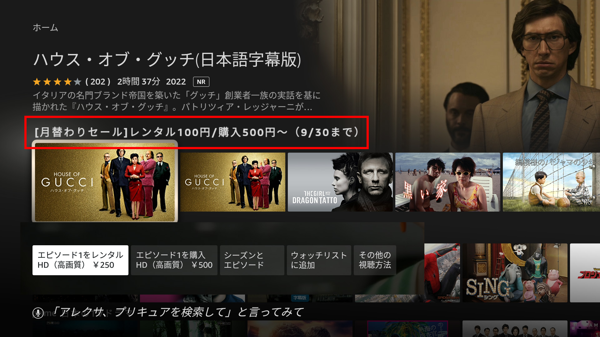 有料の場合は必ず、上記のようにレンタル○○円、購入○○円等の表示があります。