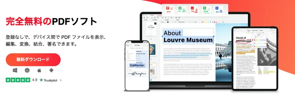 「完全無料」と聞くと、どこかに裏があるのでは?と疑いたくなりますが、PDFgearは2026年現在も、広告なし・制限なしで全ての機能を提供し続けています。その主な特徴は以下の3つです。