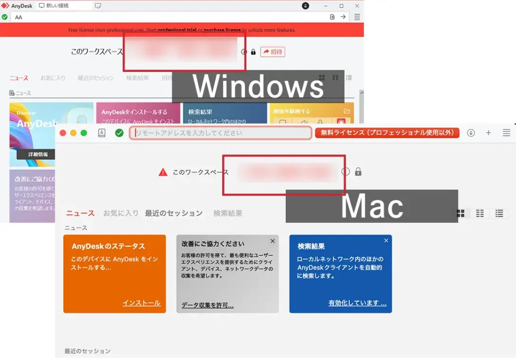 AnyDeskは個人利用なら無料ですが、「短時間に何度も接続する」「長時間繋ぎっぱなしにする」といった使い方をしていると、商用利用と判定され、接続が数分で強制終了されることがあります。