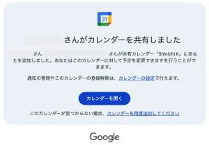 上記のSTEP3で「送信」を押すと、相手のメールアドレス宛にGoogleから招待メールが届きます。