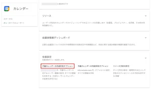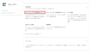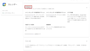 元々あるカレンダーやこれからカレンダーの項目を追加して共有する場合は予備のカレンダーオプションの項目も設定する。今後の設定でこの予備のカレンダーオプションの外部共有もオンにしておくことを強く推奨します。